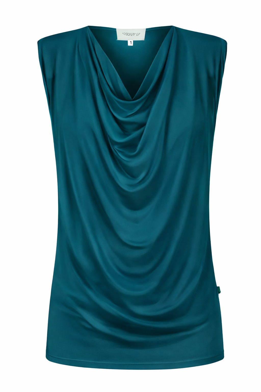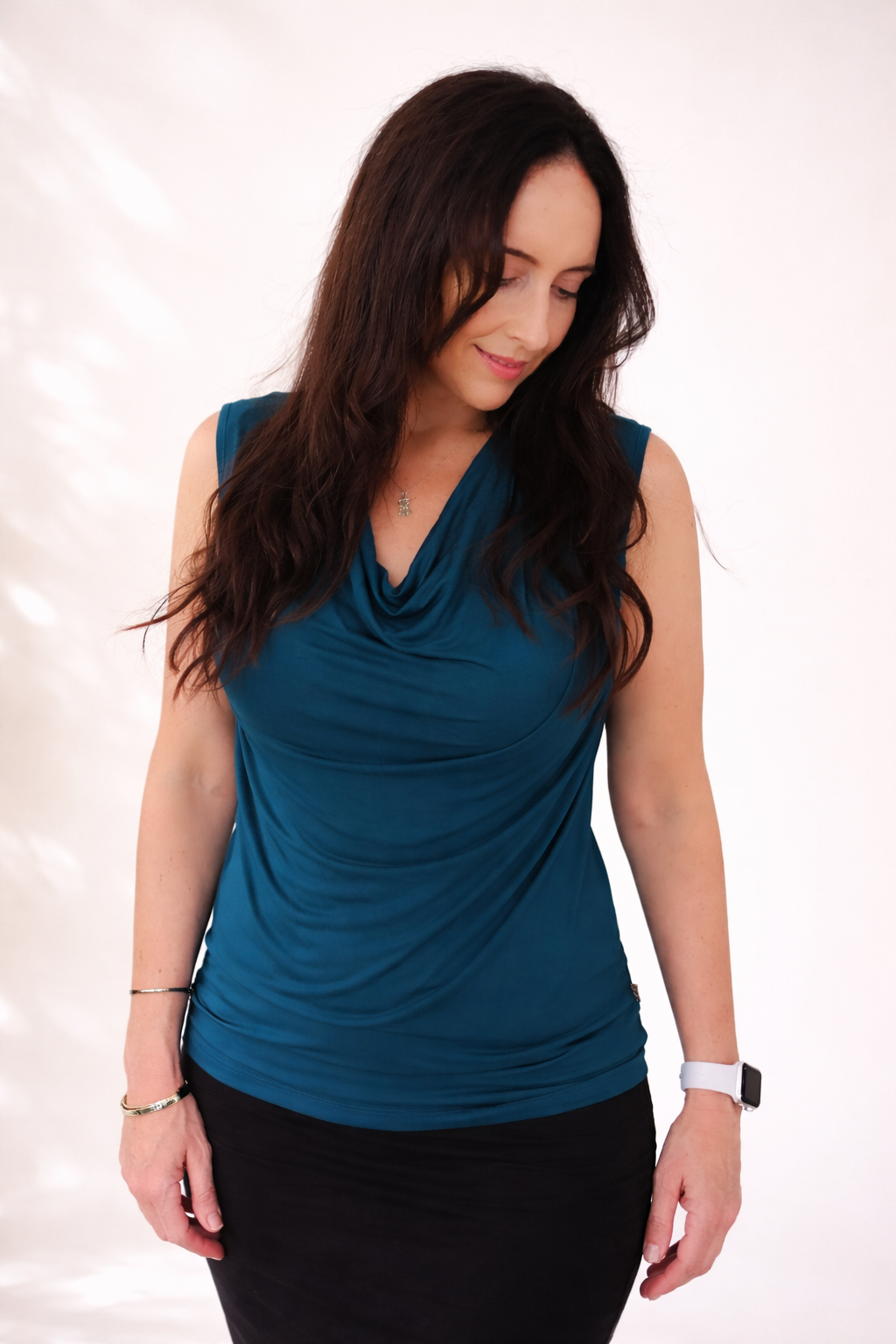 This top is all about the neckline, designed to flatter every shape. Get creative with your look: wear it off the shoulder for a chic, relaxed style, or turn it around to let the cowl drape elegantly at the back.